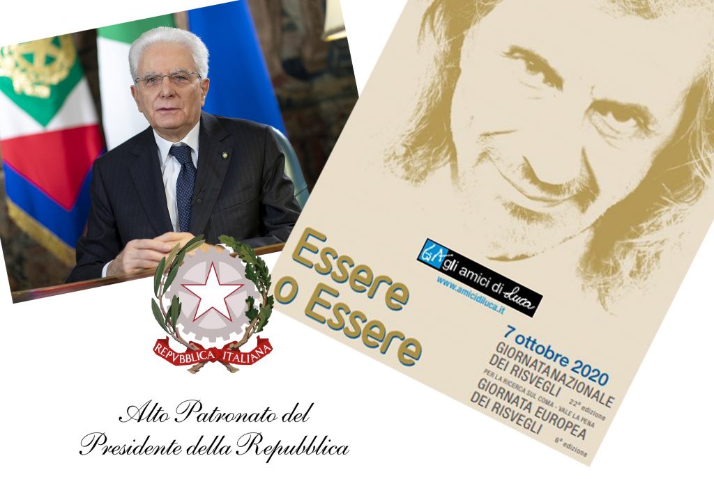 E’ arrivata lunedì 28 settembre 2020, la comunicazione dell’Alto Patronato del Presidente della Repubblica alla ventiduesima “Giornata nazionale dei risvegli per la ricerca sul coma – vale la pena” la manifestazione promossa dalla nostra associazione Gli amici di Luca e rivolta alle persone in stato vegetativo, minima coscienza e GCA e a tutti gli operatori e i familiari che attorno a queste persone fanno sentire la loro vicinanza, partecipazione e condivisione.