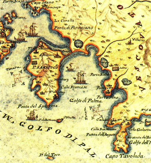 In questo disegno vediamo il promontorio di Capo Teulada e questo dista un giorno di navigazione dal primo approdo