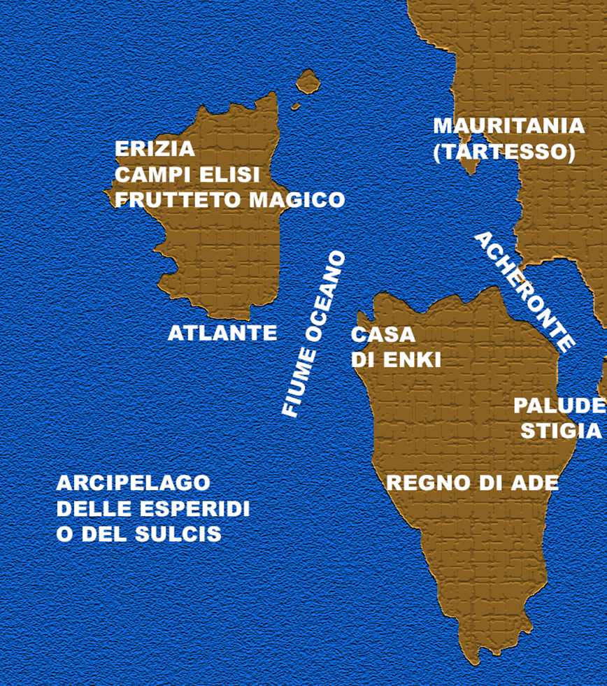 4) Questa seconda isola veniva chiamata Erizia o Elisio; vi si trovavano i Campi Elisi e il magico frutteto dalle “Poma d’Oro”. Esiodo la chiamava anche Isola dei beati;