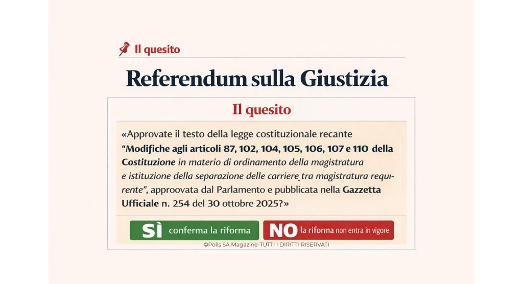 La struttura della domanda è unitaria: si vota sull’intero testo della riforma. Non è possibile distinguere tra le diverse modifiche né esprimersi su singoli articoli. Questo elemento è centrale, perché obbliga l’elettore a valutare l’impianto complessivo e non solo uno degli aspetti più discussi.